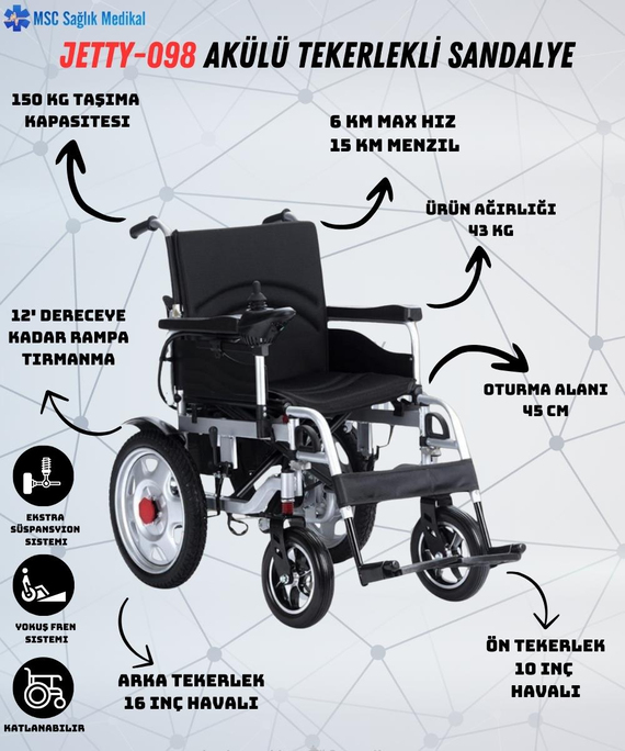 Jetty JT-098 Katlanır Akülü Tekerlekli Sandalye (8683655330078)